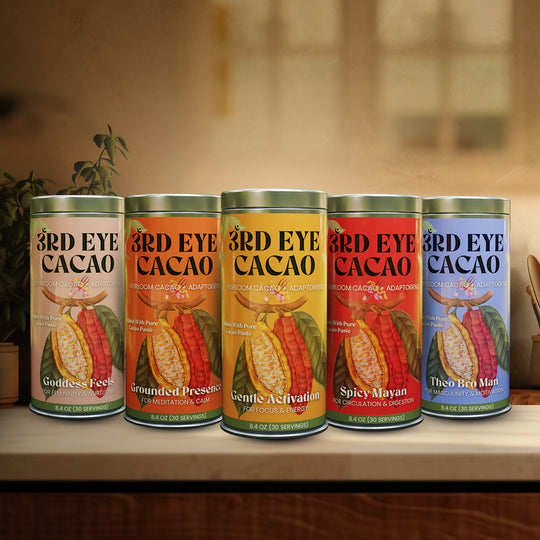 Expertly crafted with pure ceremonial cacao, natural adaptogens, and spices. Designed to be easily brewed at home. Each blend possesses a unique expression of cacao's ability to nourish your body, elevate your senses, and deepen your spiritual connection.